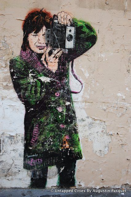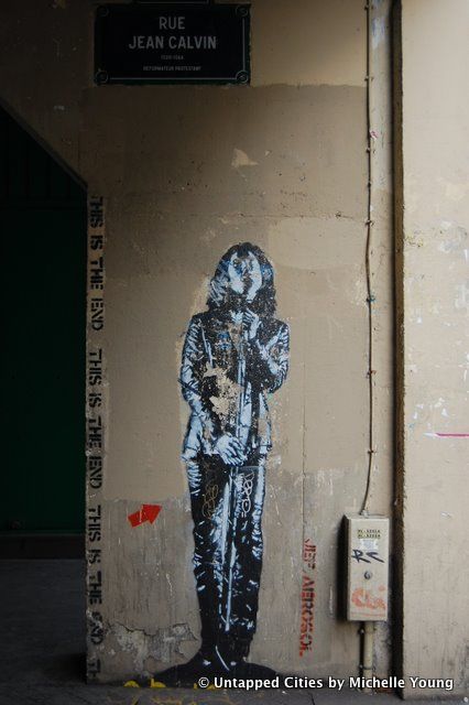 Stencil art is highly prevalent in the 5th arrondisement along Rue Mouffetard, the first two below by Jana and JS, an Austrian and French duo. You’ll also see “L’Homme en blanc” by Jerome Mesnager on this street.
