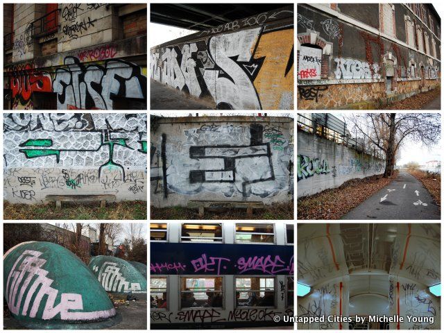 But as you go into the banlieues outside Paris, the graffiti becomes less “artsy”–the tagging has become layered over time, the murals large. Much of the graffiti occurs on public buildings and along public promenades along the Seine. To me, this is where the identity of Paris is still being negotiated. The graffiti is pure expression and there is something urgent in the artwork.