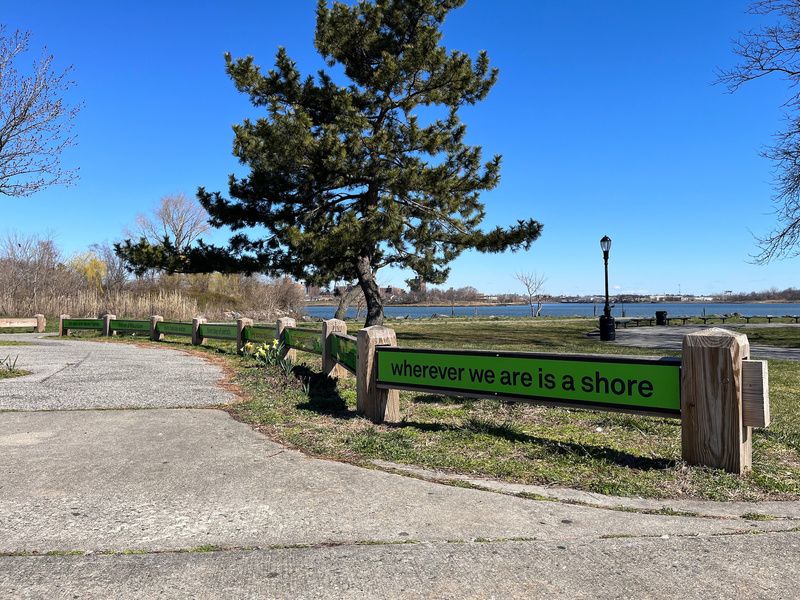 To celebrate the start of this new initiative, NYC Parks Commissioner Sue Donoghue, The Poetry Society of America Executive Director Matt Brogan, poet Edward Hirsch, and students from P.S. 676 and Summit Academy Charter School unveiled the installation at Valentino Pier in Red Hook, Brooklyn.