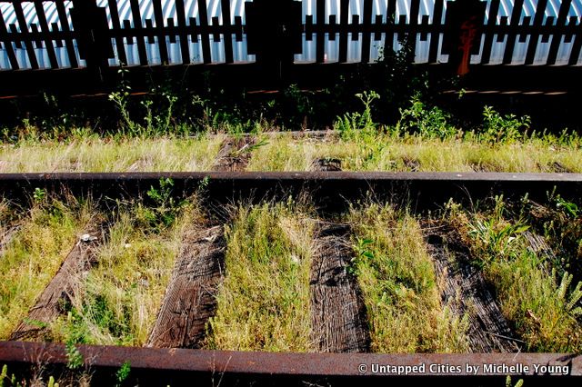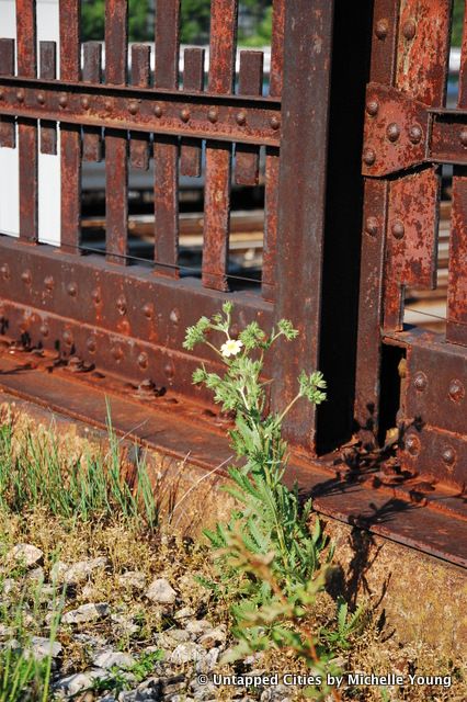 Due to all the overgrowth and decay, it’s not surprising the restoration is tricky. The decline and eventual stoppage of all traffic has resulted in significantly deteriorated conditions at the rail yards. Many of the rails and rail hardware are heavily rusted, while the original ties have degraded. Preparatory work for rail track restoration, including surveys of the tracks, began in spring 2012. Grant funds would then support removal of over 100 tons of steel tracks, which will be stored and remediated on-site. Grant funds would also then support remediation; sandblasting would remove rust, paint, and other contaminants from the steel, and other abatements will take place to remove asbestos-containing mastic. Finally, grant funds would support reinstallation of selected tracks back into the structure, with new ties for tracks integrated into their original locations in newly created planting landscapes; other tracks will be inlaid into the walking path itself, again in their original positions.