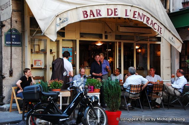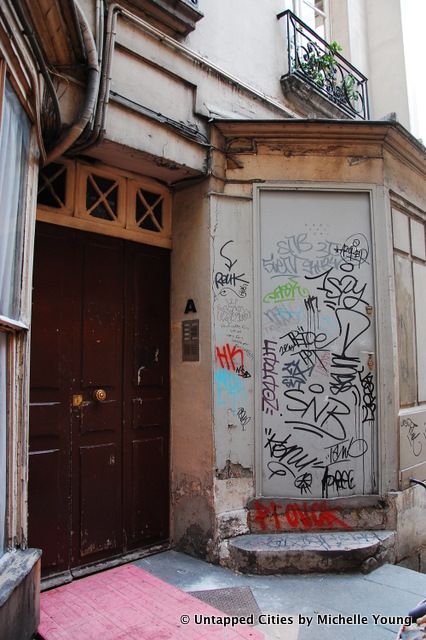 Today, the passage is an interesting mix of old and new. I often take pictures of places in Paris just because something visually has caught my eye, and not until later do I discover the rich history. I suppose it’s what happens in a city with multiple millennia of stories. The current inhabitants of Passage Beaujolais include Kitsuné, a fashion boutique with a music bent and the restaurant Alfred, with entrances both in the middle of the passage and on the street level below. Iron gates with gold accents mark both ends of the Passage.