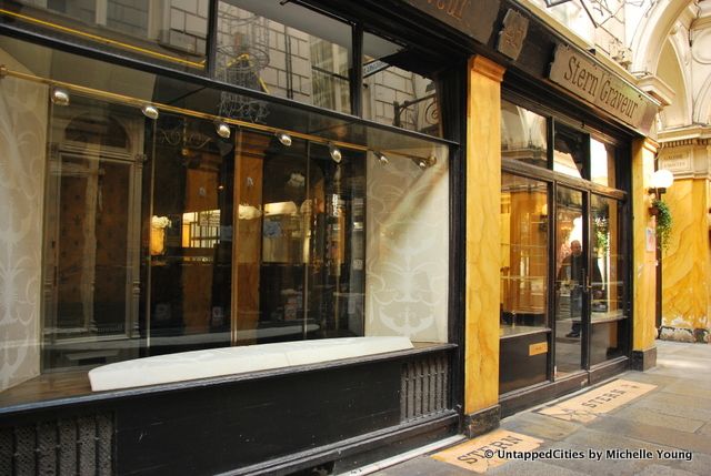 Last week, we looked at the eclectic Passage Jouffroy which was built as an extension of the Passage des Panoramas, one of the first arcades in Paris. It was long a favorite of Parisians, particularly because it once had two viewing rotundas with expansive views over Paris. Its popularity remained even after the destruction of the rotundas in 1831 due to the famous tenants inside the Passage des Panoramas, including the engraver Stern, cafe Veron, la Patisserie Felix, and a confectioner to the Duchess of Corlande. For lovers of vintage signage, the first half of the passage is ripe with well maintained examples: