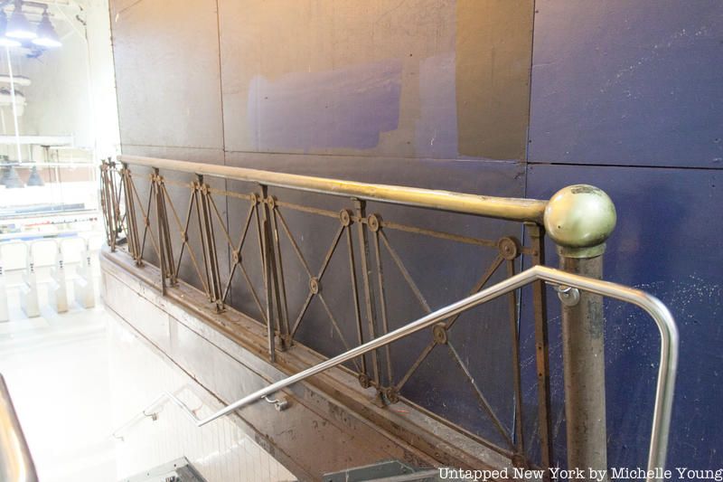Turning around from this viewpoint into the Guastavino arches, you can see the former lettering that marked the entrance to the IRT platform, as well as the original handrails and guardrails from the station. Abrams, the Amtrak spokesperson, tells us “we are looking at options for potential restoration” for the tunnel and Guastavino arches.