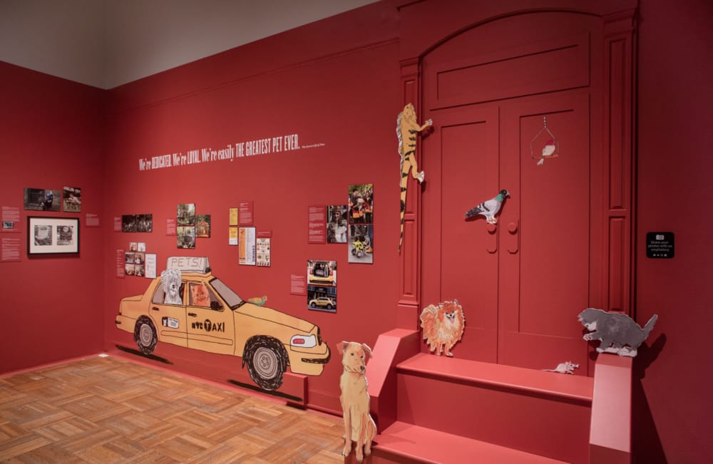 While the exhibit celebrates all the joys pet ownership brings, it doesn't shy away from the challenges of urban living for pets and wildlife. The exhibition investigates issues surrounding pet adoption, the trafficking of exotic animals, and service animals.