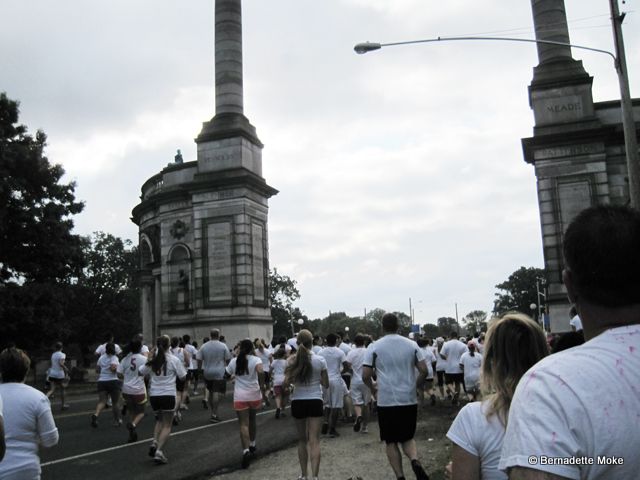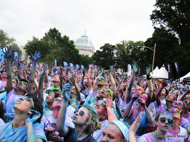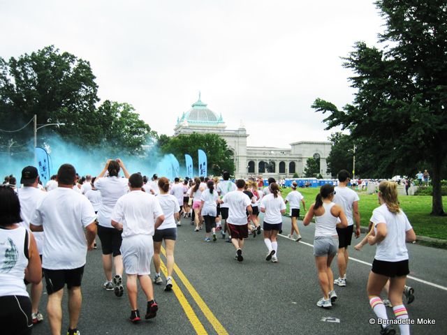 Coming up on the first color bomb station, blue. The Please Touch Museum is in the background.