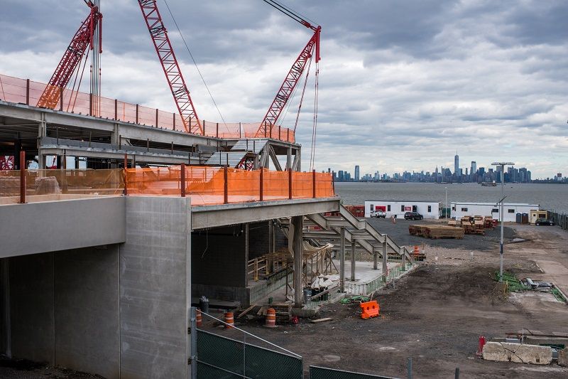 Construction progress at the New York Wheel on Bay St, in St. George with a view of Manhattan in the background. Photograph by Gareth Smit.