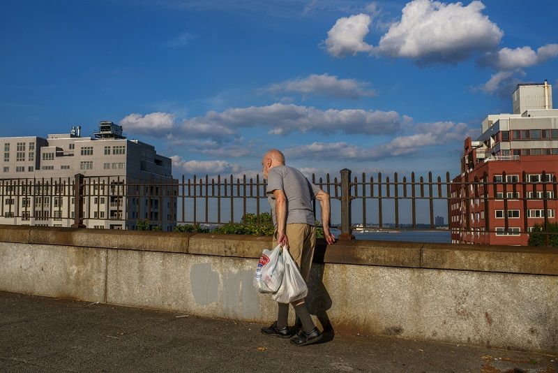 Below you can find more of his many portrayals of Staten Islanders’ current living situations that will be on display in the Alice Austen House exhibition, including that of Peter Lowy, age 72, photographed below near Victory Boulevard a year ago in Tomkinsville, Staten Island. Mr. Lowy walks along Bay Street to get groceries from the local convenience store – there are no grocery stores on the north shore.