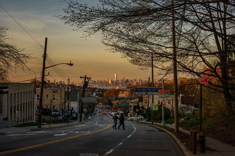 View from the top of Victory Boulevard of Manhattan at sunset. Victory Boulevard was established in 1816 as the Richmond Turnpike and stretches from the west shore to the North Shore. Photograph by Gareth Smit.