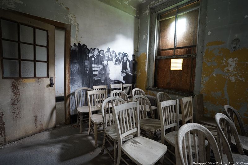 Another restored space on the campus that you’ll see on the tour is the recreation pavilion. Located between the general hospital building and the contagious disease wards, the pavilion was built atop new land in 1934. This addition to the hospital allowed patients to enjoy the outdoors and take shelter in inclement weather. The pavilion also served as a performance space used by famous entertainers who came to put on shows for the U.S. Coastguard troops stationed at Ellis Island during the 1930s.