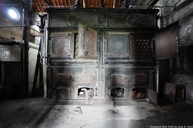 One of the first stops on the tour is inside the laundry building, a space that has been restored to a state of “arrested decay.” This means it doesn’t look like it would have in the early 20th century, but rather it is stabilized and safe in its current condition. Inside the building, you’ll see original machinery like washers, dryers, and presses.