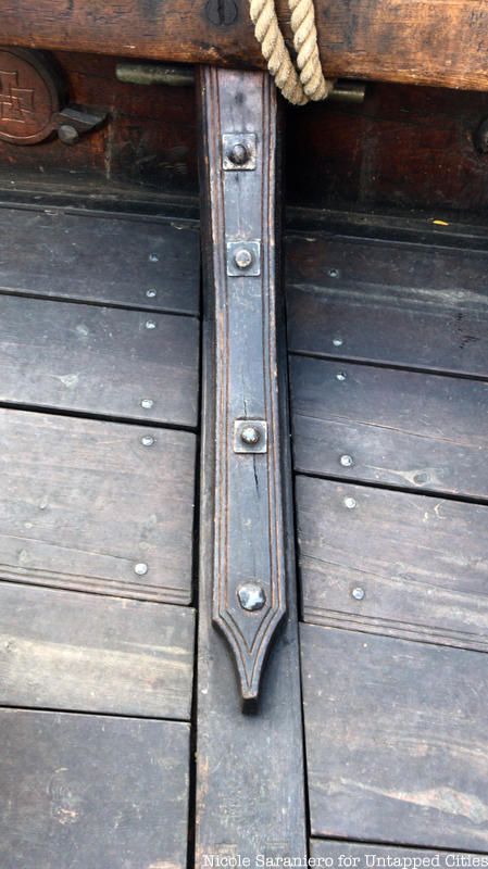 The planks of the ship are held together with over 10,000 clinkers, or very, very long nails that can take anywhere from 100 to 1,000 hits to get in. Standing on the deck, you notice that the planks are loose beneath your feet. This is an intentional engineering feature designed to give the extremely long ship flexibility on the seas.