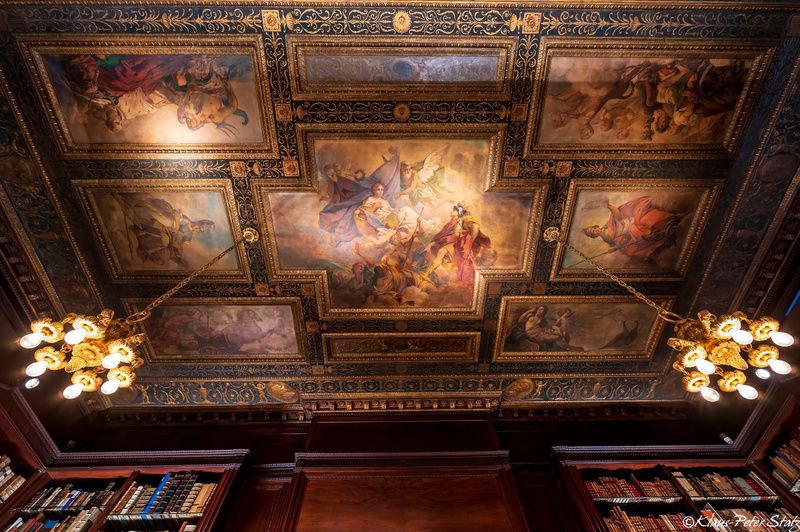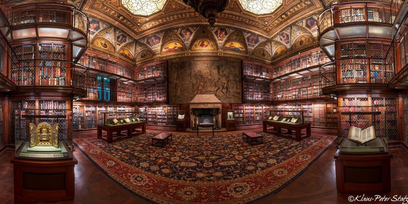 The main attraction at The Morgan is the library. Here, bookcases cover the walls from the floor to the soaring thirty-foot ceiling. Made of inlaid Circassian walnut and bronze, the cases hold priceless books and manuscripts that Morgan collected throughout his life. The library is also full of hidden secrets. Hidden behind bookcases at the corners of the room, there are two secret staircases that lead to the balconies above.
