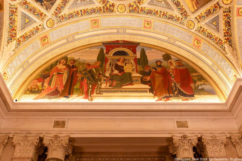 On the tour, Insiders learned about all of the hidden symbols within the art on the library’s ceiling. The paintings depict famous artists and their muses, as well as the signs of the zodiac. The placement of the zodiac signs was personal to Morgan. Above the door, he placed Aries and Gemini, signs that correspond with Morgan’s birthday (April 17, 1837) and the date of his marriage to his second wife Frances Louisa Tracy (May 31, 1865).