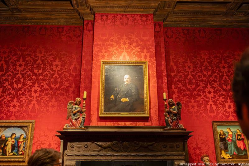 Hanging above a bookshelf, you’ll find a portrait of Morgan’s son, J.P. Morgan Jr., the man who made his father’s collection open to the public. A portrait of Pierpont Morgan by Frank Holl hangs above the fireplace on an adjoining wall.
