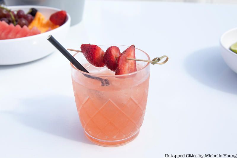The Strawberry Collins with Aviation Gin, Strawberry, Fresh Lemon Juice & Club Soda