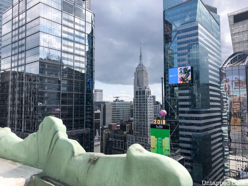 The views from the globe include a glimpse of the Empire State Building, a view up 7th Avenue, a view of the New Year’s Eve ball atop One Times Square, and a view of the Hudson River.