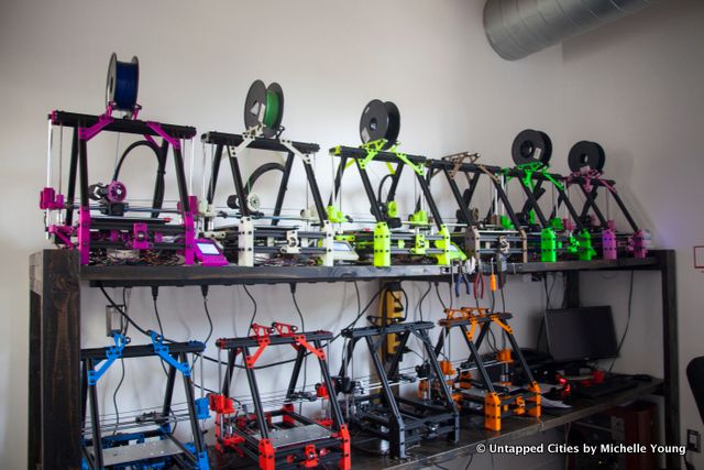 Our next step, just steps away, shows the contrast between what’s coming and what’s currently there. The Staten Island Makerspace is a former oven manufacturing facility turned auto repair space now a co-working space and makerspace run by artists Scott Van Campen and DB Lampman. One half of the space is a metalworking and woodshop shop, the other a mix of open space desks, computer lab and sewing studio.