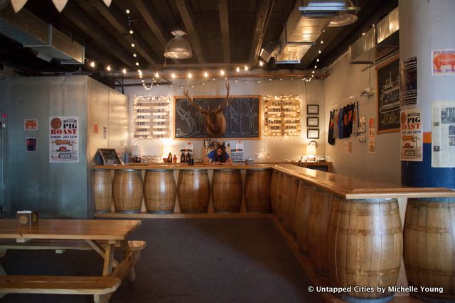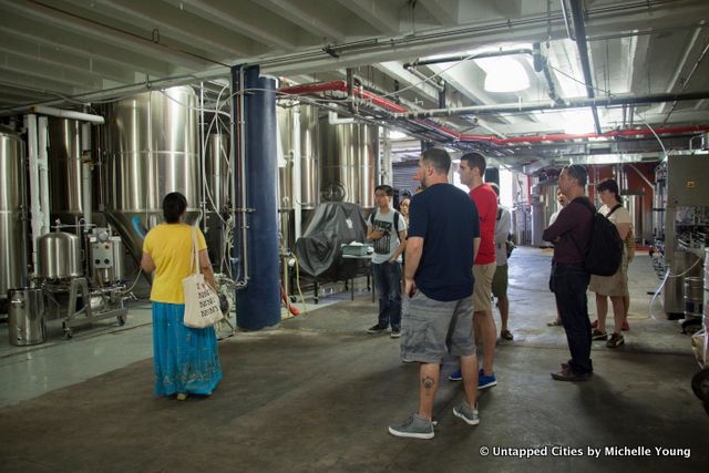 Our final stop, after a walk through the St. Paul’s Avenue-Stapleton Heights historic district peppered with Victorian mansions, was to go behind the scenes at the The Flagship Brewing Company, whose tag line is “Unforgettable Beer in the Forgotten Borough.” The company got its start in part with a grant from NYCEDC’s “Staten Island Storefronts” competition, bringing the tradition of beer brewing back to Staten Island, once a major player in the industry before Prohibition. Flagship is nearing capacity production based on their current space but are planning to make modifications to the brewing area before expanding physically. The other half of the space is a tasting room, as a priority for Flagship is to activate the neighborhod and serve as a destination for locals.