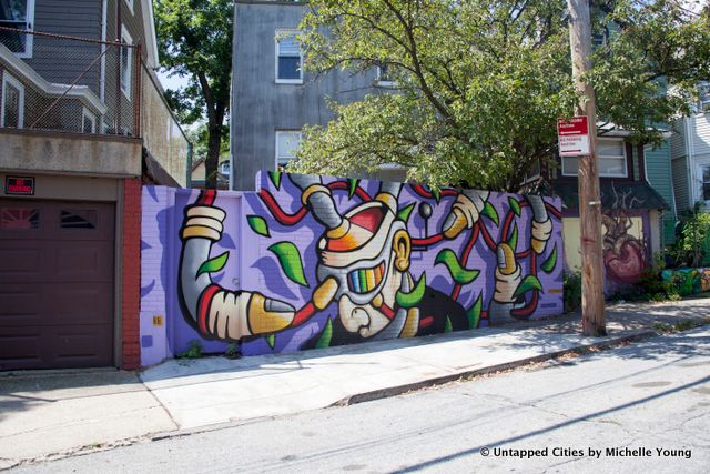 After a walk by the “Windows into the Past” outdoor photography exhibition on Bay Street we headed uphill along Wave Street, passing by the Staten Island Artists Building Corporation (S.I.A.B.C.), host to many street art pieces (one by ErinKelli Killbane featured in our picks for top street art murals of the year so far). Just up the street is TechBox, a co-working space run by John Salis from S.I.A.B.C., with an optional affordable housing component. As evidenced by the makerspace/artist/technology meld Johnson spoke of earlier, there was a 3D printing facility working away in the back of TechBox.