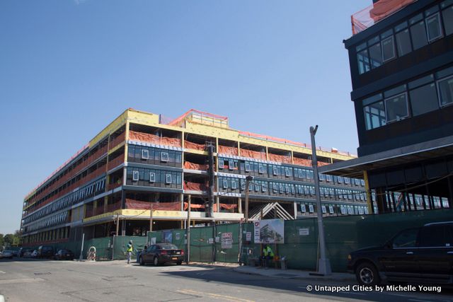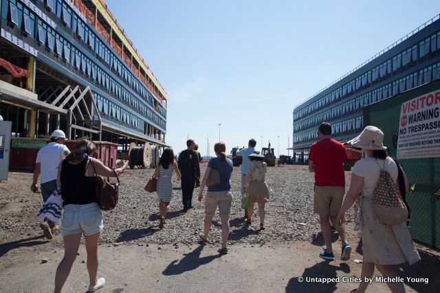 The first stop was the URL Staten Island project by Ironstate Development on the New Stapleton Waterfront, a 900-unit project slated to open by this year on the site of the former naval homeport. We stepped onto the construction site to see the in-construction buildings, targeted for a rental-only demographic in their 20s and 30s, with 20% affordable housing. Greg Russo, our guide for the site from Ironstate Development believes that initially there will be a high percentage of Staten Island residents moving here–up to 80%–and it seems that the borough hopes to catch millennials who may otherwise move out when they join the workforce.