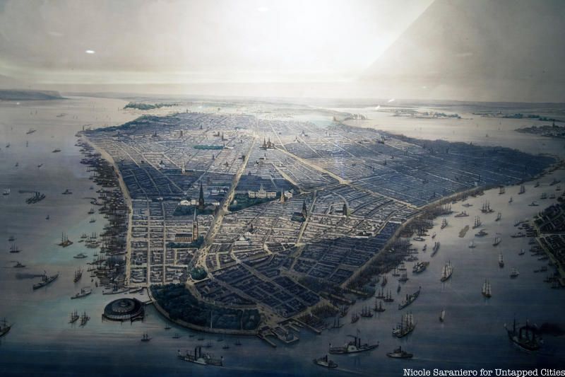 Another unique item in the gallery is a bird’s eye view of Manhattan from 1851. This is likely one of the rare bird’s eye depictions of the city that was actually sketched from the vantage point of a balloon. The view is what you would see if you took a balloon ride up above Governor’s Island. The artists who sketched out the island would have spent some time up in the air and then passed off the assignment to an illustrator who would have filled in the details.