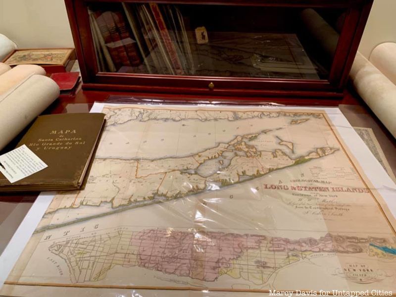 The large Map of the City of New York which dates to 1898 is the first to show all five boroughs of New York. The map is extremely detailed and Insiders enjoyed finding where on the map their homes would be. Roy explained that part of the reason streets in Queens are often confusing, with streets, avenues and roads often sharing the same name, is because the area was made up of a bunch of different villages that were consolidated into one borough.