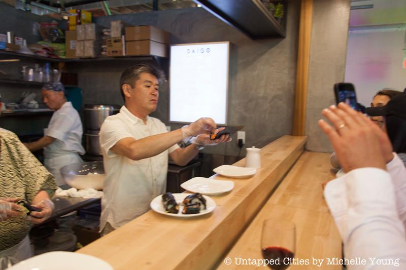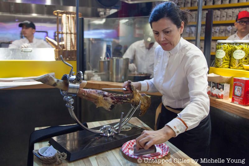 There’s also a great offering of foreign and foreign-inspired cuisine. These includes Eight Turn Crepe, which makes Japanese-style sweet and savory crepes from rice flour feels like a little stand in Tokyo, Kotti Berliner Döner Kebab, Jianbing Company serving Shanghai style street food, Café d’Avignon serving French pastries and French fare, Pierogi Boys, Daigo Hand Roll Bar which serves sushi at a classic Japanese sushi counter. The Paella Shack was carving prosciutto directly off a dry-cured pig.