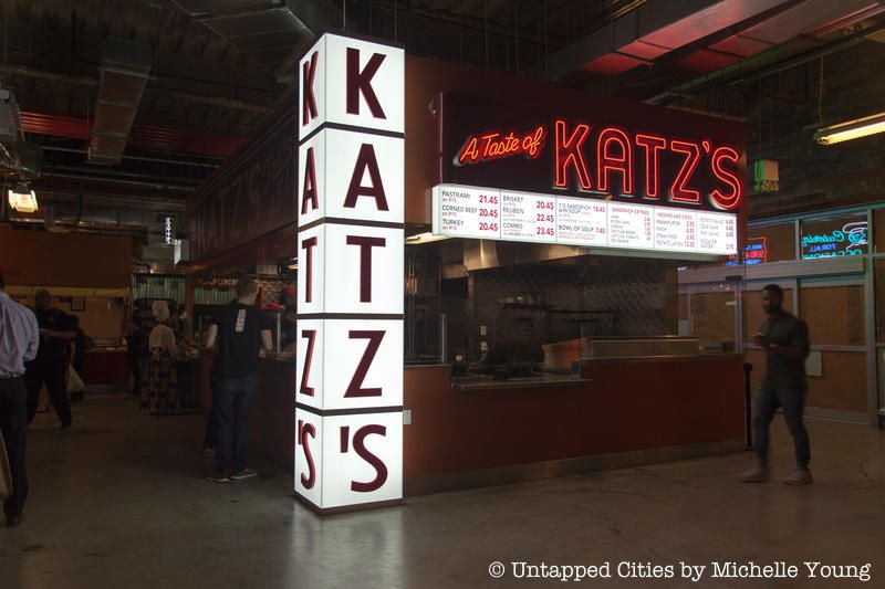 Besides Katz’s, you’ll find other New York classics like bagels at Andrew’s Classic Bklyn Bagels, coffee at Noble Tree Coffee, bbq at Fletcher’s, fries at Home Frite, and a full bar and restaurant at Fontina’s. There’s a butcher shop and cheese shop, and you can even watch donuts get rolled and fried up close and personal at Cuzin’s Duzin.