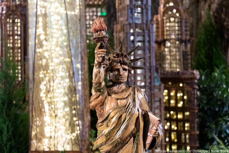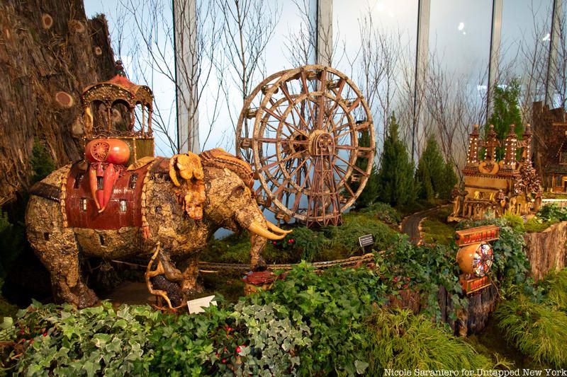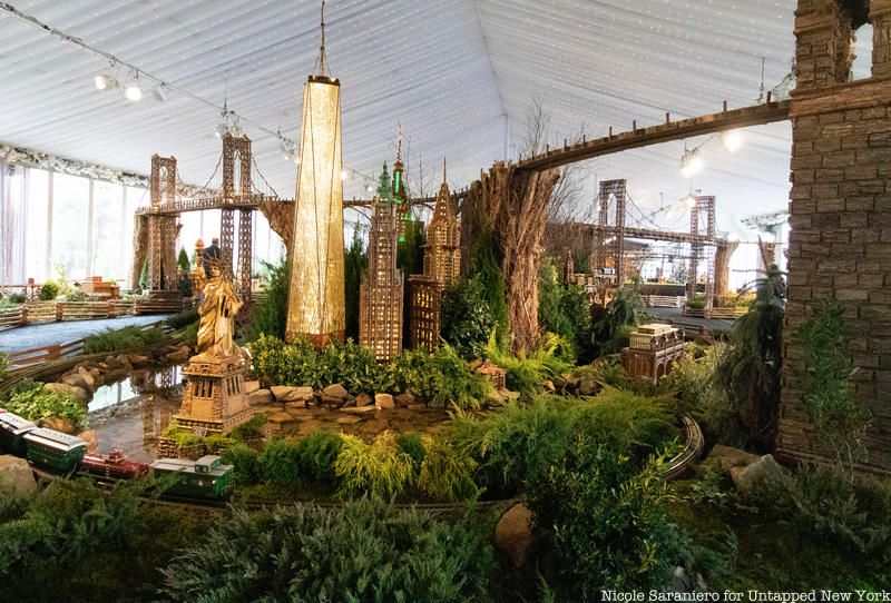 “A plant based homage to New York City,” as Carrie Rebora Barratt, CEO and President of the New York Botanical Garden calls it, has sprouted in the Bronx. The Holiday Train Show is back and bigger than ever this year as the “mini metropolis” made out of plant materials takes over a new space adjacent to the Enid A. Haupt Conservatory (The Conservatory is undergoing restoration). The 28th annual train show features miniature versions of buildings found throughout New York City, and the Hudson Valley, constructed out of natural materials such as leaves, acorns, twigs and seeds, arranged around a web of tracks with model trains zipping by. New to the show this year are plant-based versions of the historic structures of Central Park.