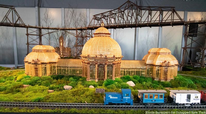 All of the figures in the scenes are created by artists at Applied Imagination, a Kentucky based company that has been bringing the train show to life since 1992. Founded by landscape architect and train enthusiast Paul Busse in 1991, the “botanical architecture” company is now run by Busse’s daughter Laura Busse. The crew at Applied Imagination works on the train show all year round, collecting new materials, building new replicas and fixing up old ones. The model of the Haupt Conservatory alone took over 600 hours to create. There are some structures in the show that have been on display for more than twenty years.