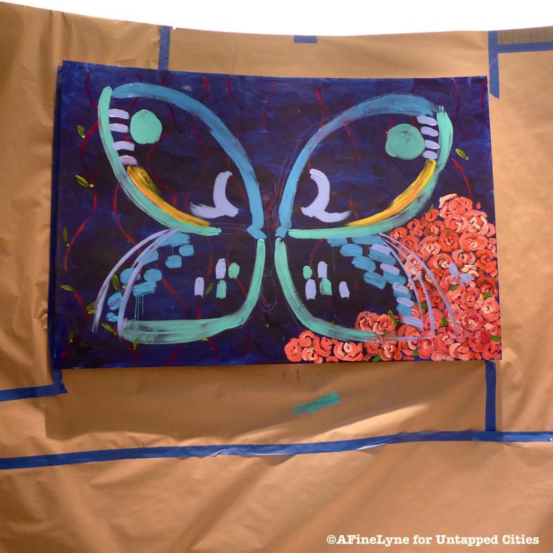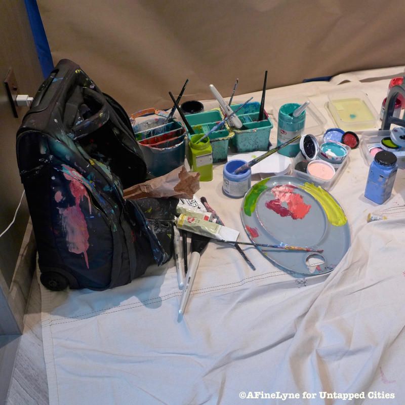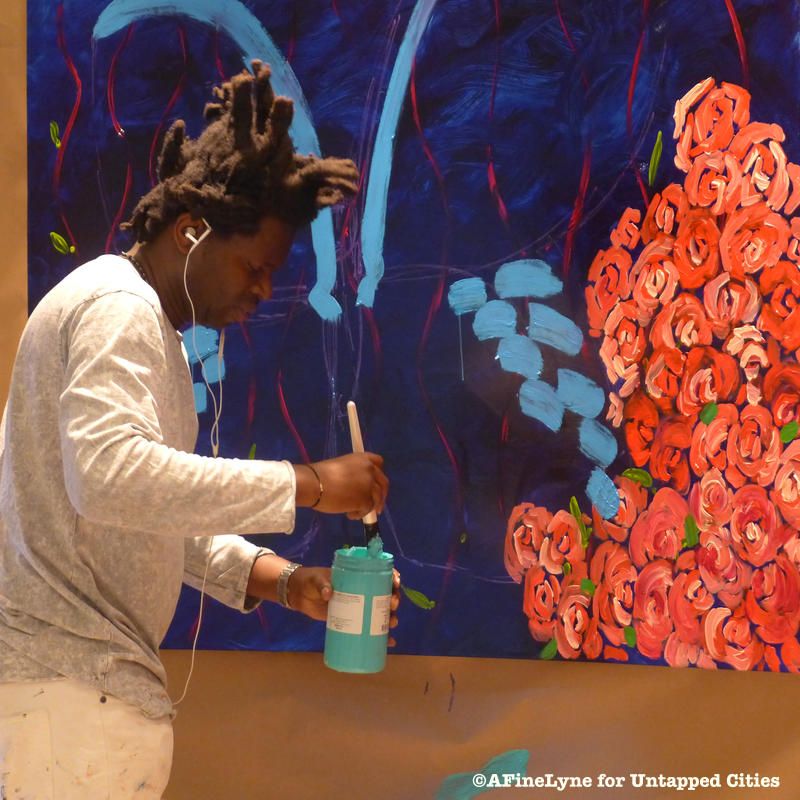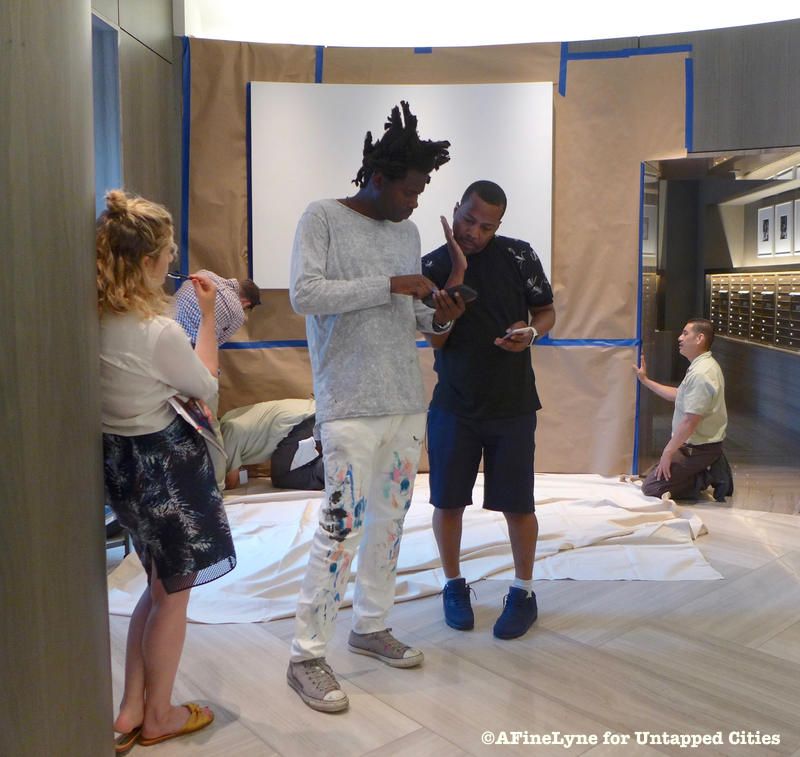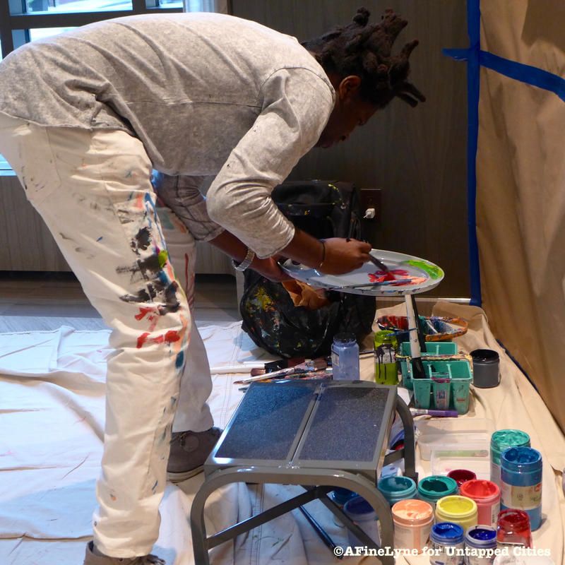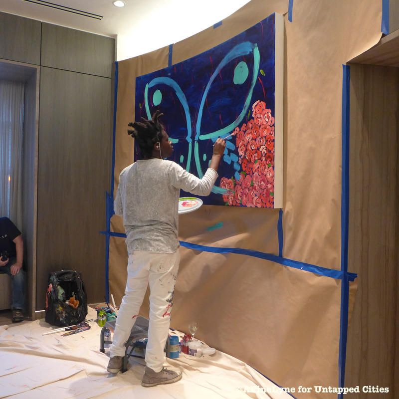 The artist Bradley Theodore, known for his psychedelic portraits of high-profile figures, was commissioned by the real estate development firm, Related, to paint live in the lobby of 261 Hudson in SoHo. Untapped Cities was invited to be present for this festive and colorful event. Below are a few photos of the occasion, which you can scroll through to see the brilliant artist in action!