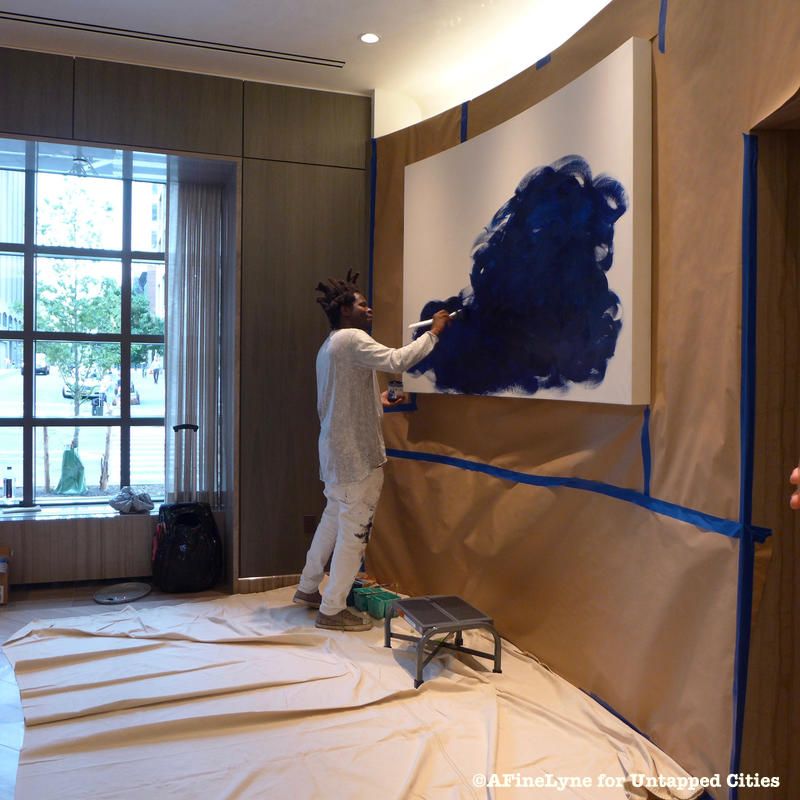 261 Hudson, designed by critically acclaimed architect Robert A.M. Stern, acquired two Bradley Theodore paintings. One of the paintings graces the wall of the residents’ lounge on a lower level, and the second is a canvas that was painted live, and will remain on the wall in the front lobby of the luxury rental. Be sure to head over there to see the paintings for yourself!