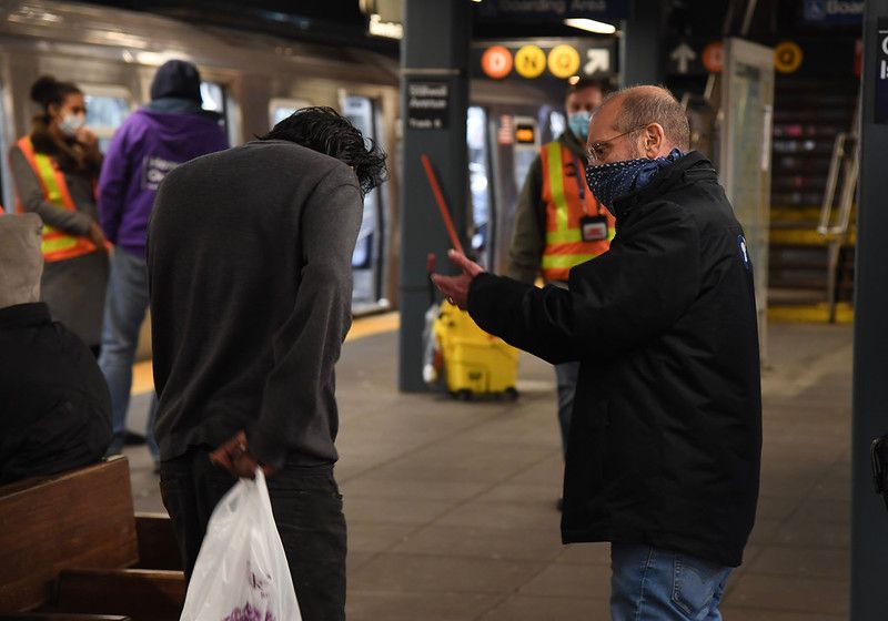 A number of photos also reveal community members and police assisting homeless outside the station prior to cleaning. A recent Guardian article suggests that subway closures will have a “devastating” impact on the homeless, but efforts are being made by New York organizations to help the homeless stay safe throughout this pandemic. On the first night of the subway’s closing, 252 homeless people were approached by outreach workers and NYPD officers, and reportedly 139 agreed to leave the streets and seek help.