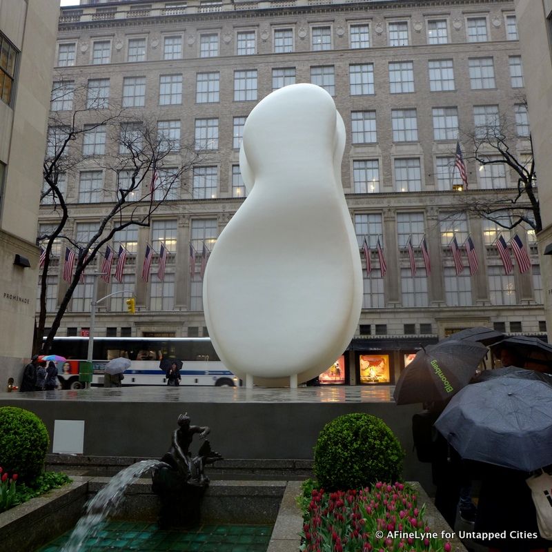 A walk down Fifth Avenue usually brings with it the expectation of high-end shops, windows with elaborate seasonal changes that capture our imagination, and many, many tourists. The artist duo Elmgreen & Dragset (famous for the fake Prada store outside of Marfa, Texas) play into our fantasy, creating a site-specific installation that turns Fifth Avenue on its ear – literally. The installation, Van Gogh’s Ear has appeared today on Fifth Avenue at the entrance to the Channel Gardens at Rockefeller Center between 49th and 50th Streets. This large-scale, new work, stands singularly, as if for sale, but without the window.
