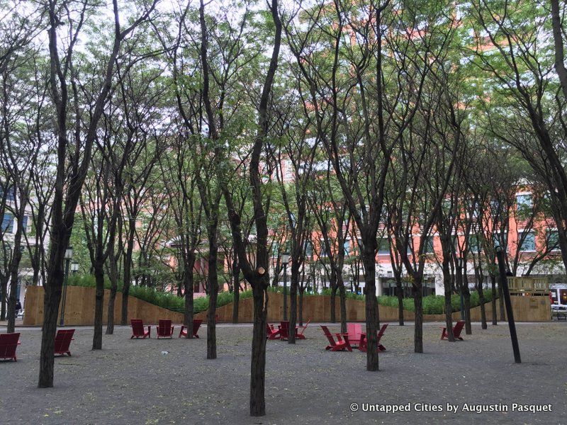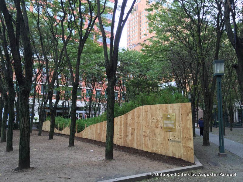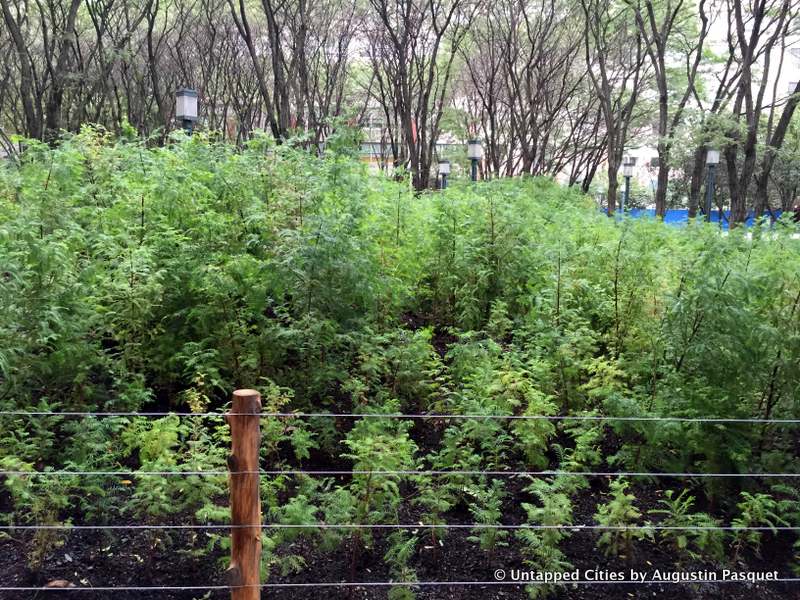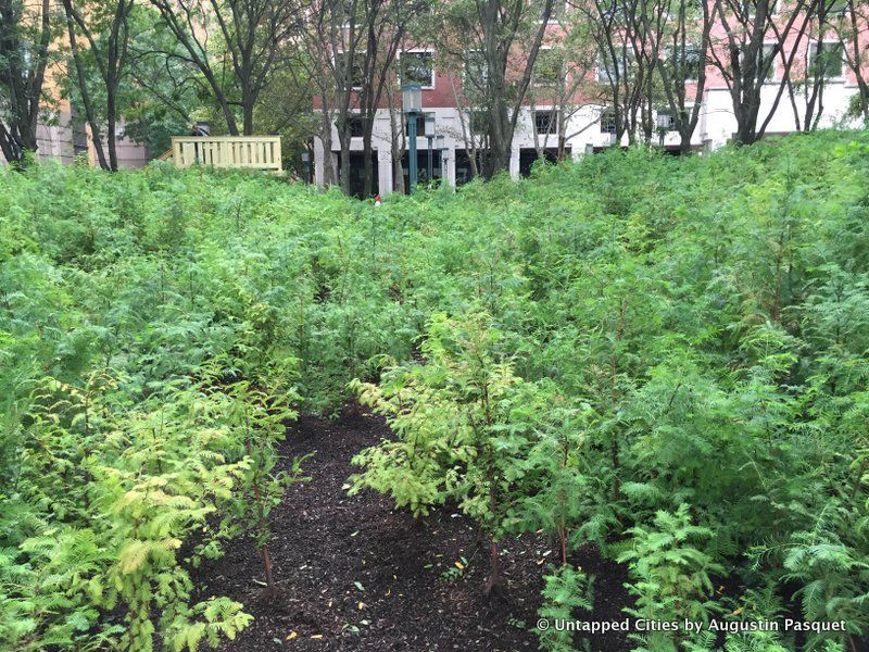 It’s a replica of an actual 790 acre portion of Redwood National Park on 4,500 square feet of public space, and if you look closely, you’ll even find a miniature campsite. Even the height of the trees are to scale, as well as geographical elements like creeks and logged areas. The 4000 trees planted aren’t completely foreign to New York City either – they’re young dawn redwoods, a genus related through its ancestry to the giant sequoia trees out west that also grows on New York City streets. There’s a massive one in Brooklyn Heights at 151 Willow Street that is over 100 feet tall and the tallest redwood in Manhattan is located in Liz Christy Community Garden, also over 100 feet. The New York City Parks Department states that the dawn redwood hails originally from China, “known only from fossils until 1941.” It’s also one of over 40 species approved for planting by the Parks Department and is resistant to the Asian Long Horn Beetle.