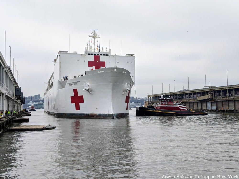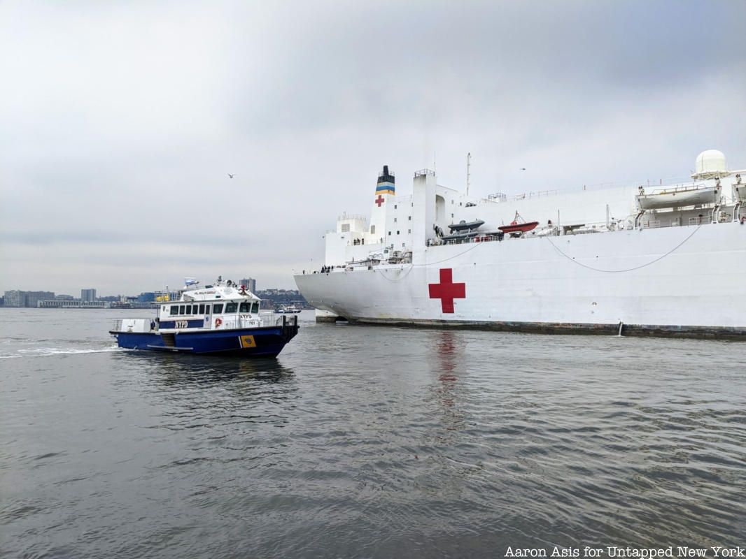 Many boats accompanied the arrival of the USNS Comfort as it made its way here from Virginia, and looking at live tracking of the ship in advance, you could see the fleet surrounding it. As the USNS Comfort entered New York harbor, tugboats and other boats joined in. The USNS Comfort will not be used for coronavirus patients, but will be used to perform surgeries and other critical care for hospitals that are overrun with coronavirus care. As Governor Cuomo said at the press conference this morning, the ship will be “a relief valve for the hospitals.” This, along with the Javits Center temporary hospital that opened this weekend, will open up capacity at the local hospitals.