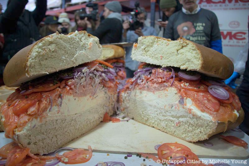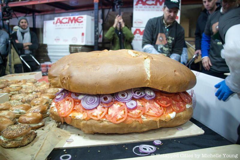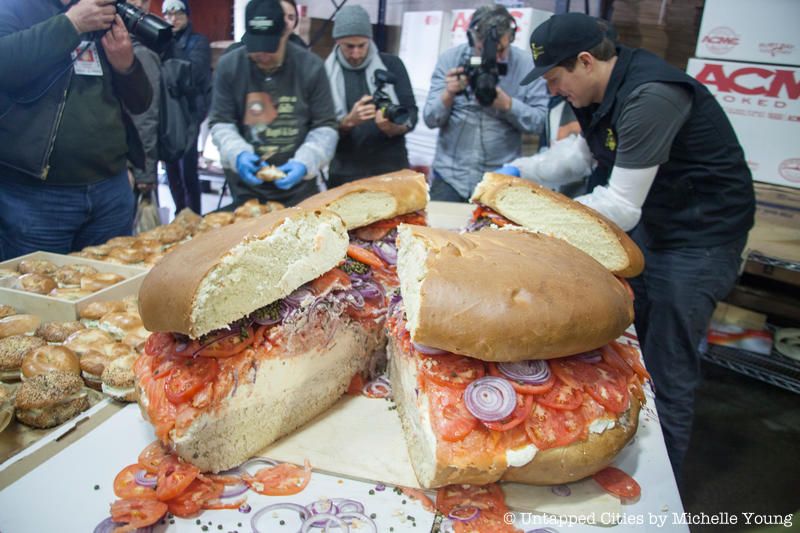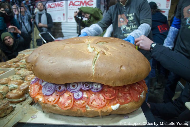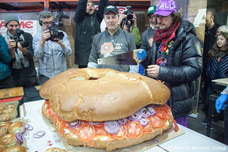 PHOTOS: World’s Largest Salmon Lox Bagel at 213.75 lbs Made at Acme Smoked Fish in Brooklyn