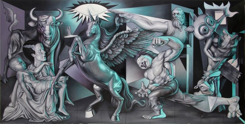 Mythological Guernica, 2015-2016, oil on canvas. Image courtesy of Allouche Gallery and the artist