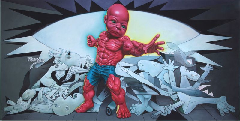 Tempter Tot Tramples Guernica, 2015-2016, oil on canvas. Image courtesy of Allouche Gallery and the artist