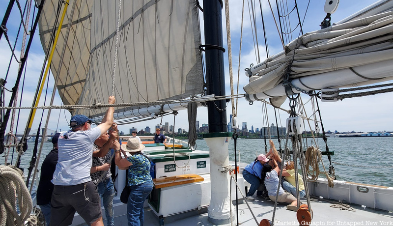 Last weekend, Untapped New York Insiders had the unique opportunity to sail around New York Harbor aboard a 19th-century ship from the historic fleet of the South Street Seaport Museum. As we enjoyed a 2-hour private charter on a breezy and sunny afternoon, Insiders photographed iconic landmarks, helped the crew raise the sails, and enjoyed some snacks. Check out photos from our excursion below and join us for the next Insider experience by becoming a member today!