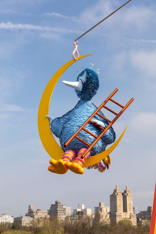 Da Corte, who grew up in New Jersey, currently works in Philadelphia. Familiar with the mediums of film, performance, painting, installation, and sculpture, the As Long as the Sun Lasts installation aligns with his interests along with the history of The Met rooftop. The title pays homage to a series of short stories by Italian author Italo Calvino. As Big Bird observes the adventures of New Yorkers from his perch on a yellow crescent moon, he honors the short stories that have an aura of adventure and exploration. For even when the sun is gone, New Yorkers never sleep.