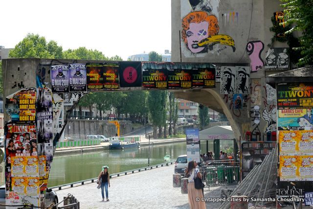 So if you’re asking yourself where do all the cool kids hang out in Paris, away from all the tourist hordes? In and around Canal St Martin of course! Perched on top of the Canal Saint Martin lies a Berlin-esque beer garden, restaurant and art space called Point Ephémère. From the outside it just looks like a street artists haven, with some chairs strewn about with a few broken bottles amidst garbage bins. Once you get closer you realize it’s a unique space with art installations and regular programme of events as well as bar/restaurant. It’s not something you would expect to find in Paris nestled along the Canal next to a fire station but it’s certainly a nice surprise.