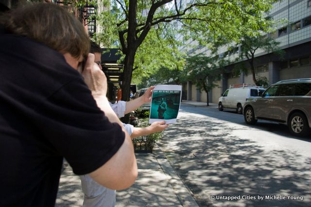 Egan tells us that this was a relatively easy search. The Grateful Dead album cover search took him a year. Afterwards, Egan gave us a brief PopSpots tour of West 53rd Street. He showed us where an iconic Bruce Springsteen photograph had been taken on the intersection of 53rd and 10th Avenue, and the studio where Springsteen and other musical icons had recorded, Power Station, which has since been renamed Avatar Studios. He notes that his project has revealed that many album covers were shot nearby or on top of the recording studios.