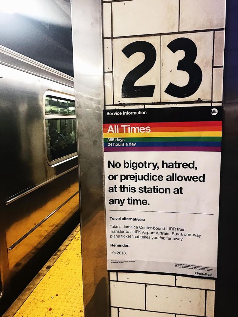 In addition to the main message that promotes no bigotry, the ads feature humorous “travel alternatives” and reminders to “tip your drag queen,” that “it’s 2018,” and that “love is love is love is love…”