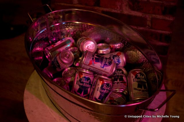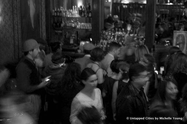 The cocktails, served in teacups, ranged from classics like the Sidecar, Bee’s Knees (as we recently sampled at Milk & Honey), Southside and our favorite, the Blood & Sand. In the mythic back room of the Back Room, normally closed to regular patrons of the Back Room and reserved for ProhibitionNYC VIPs, Templeton Rye whiskey was served straight up or on the rocks, as well as absinthe. Also available, Pabst Blue Ribbon on tap and in cans.