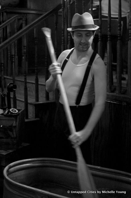 Despite the high price points for their events, McCue and Banks don’t do events for profit. All of it goes into the experience. The search for authenticity led to an epic “bathtub” incident, beginning with a quest for an authentic period bathtub for an actor to stir gin. Purchased at ungodly cost (which we won’t name here), the bathtub made its way from the Bronx to the Back Room (with some hiccups along the Major Deegan Expressway), only to spring a leak when installed at the event. Luckily, there was a backup.