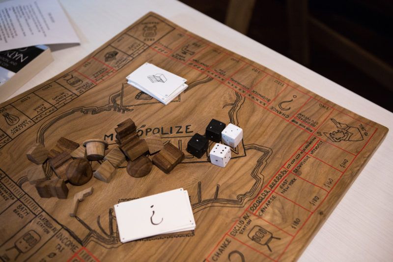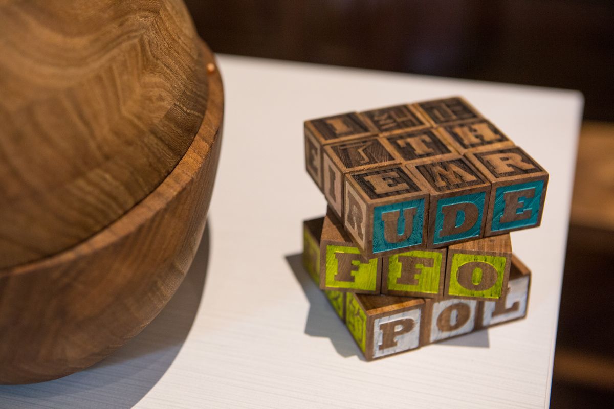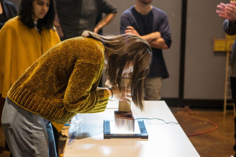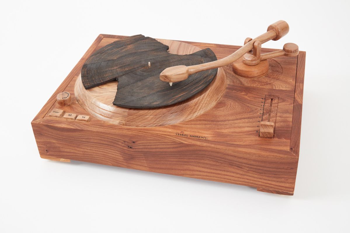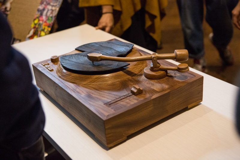 Over 150 years ago, the tree stood firm in the Prospect Park Parades Ground. The exhibit was made possible when RE-CO BKLYN, a Brooklyn-based lumber company, cut and dried the elm. Students then used the harvested wood to create objects ranging from kaleidoscopes through which viewers can see the text of President Trump’s proposed travel ban to a model of the turntable used by an immigrant musician.