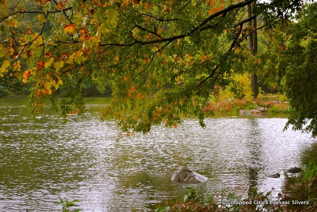 In the restoration, the engineers recovered materials from the original design that were dumped inside the lake during the construction of the rink. In the dredging, they discovered one piece of original railing and were able to recreate that portion of the park exactly to what it was historically.