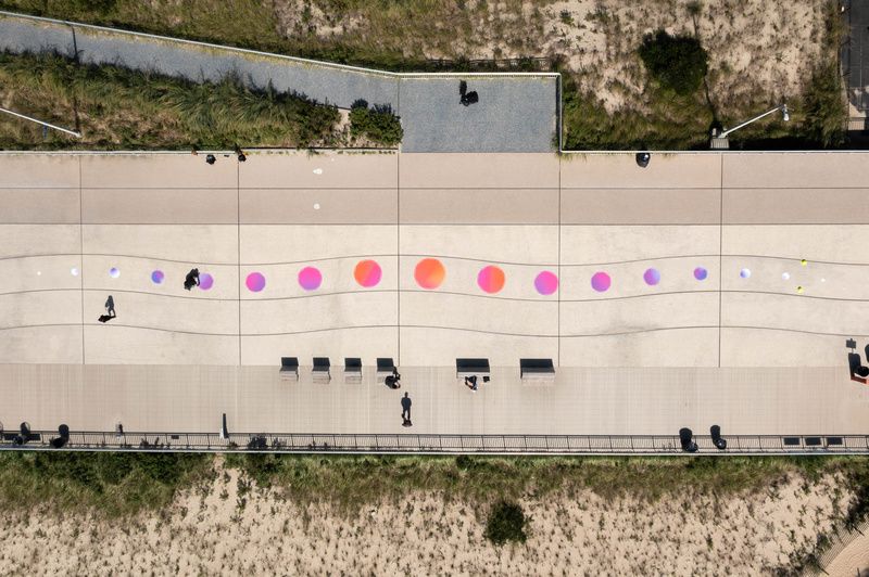 On display through September 30, 2022, is The Ribbon, a playful interactive platform that invites passersby to connect with Long Island City admirers. The work aims to break down barriers and connect people through moments of open-ended play while also serving as a place for people to stop and engage in fruitful conversations with one another.