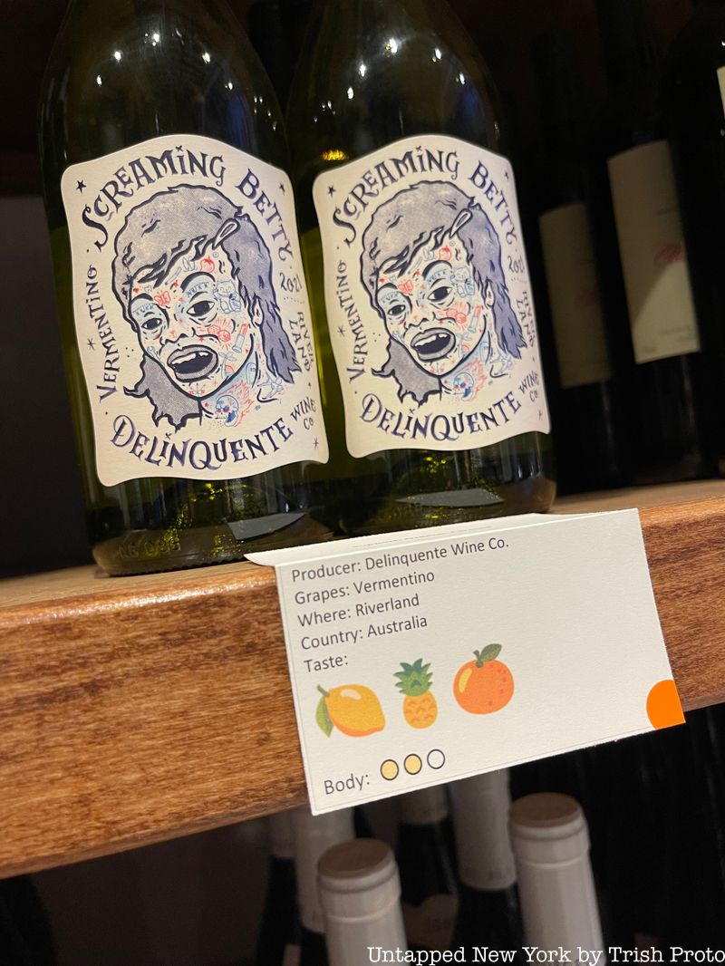 To make the stock even more accessible, it is also categorized by price, so you can walk in and go right to a quality product within your price range. Helpful information about each bottle is displayed on a tiny notecard that lets you know who the producer is, what types of grapes were used to make it, where it’s from and what it tastes like. The tasting notes are illustrated by fun emojis!